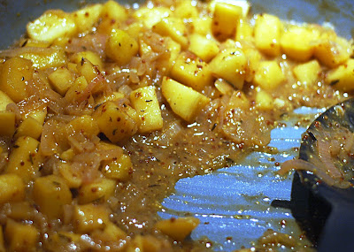 Add in apples, cinnamon, cayenne, thyme and crack black pepper and continue to cook an additional 5 minutes.